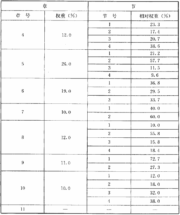 表A.0.1 章、節(jié)權(quán)重