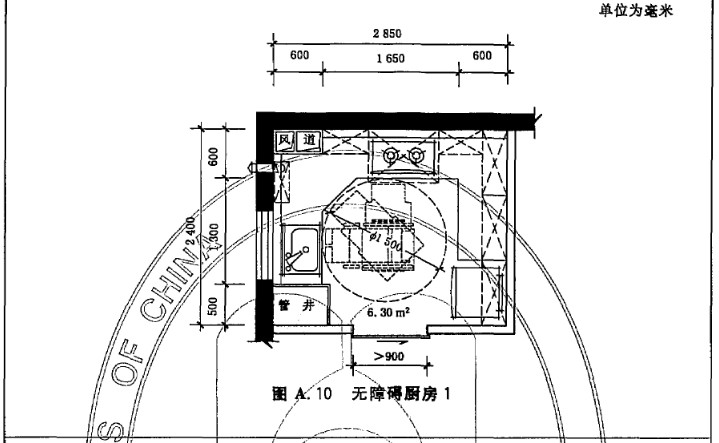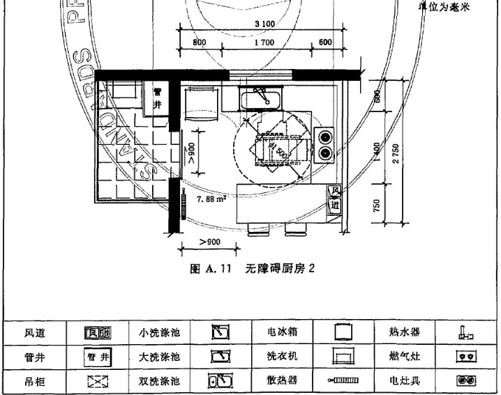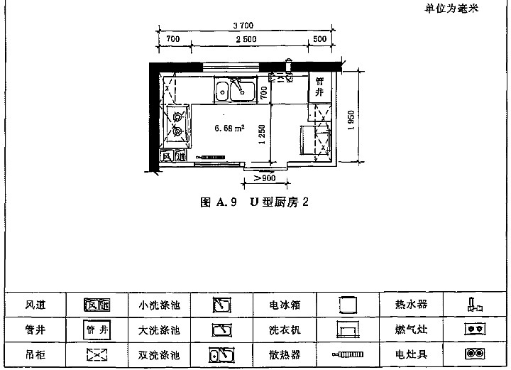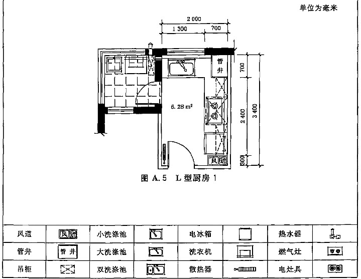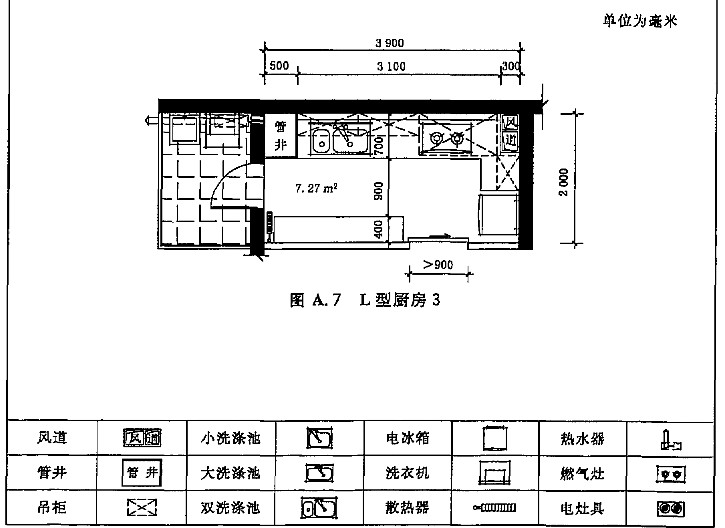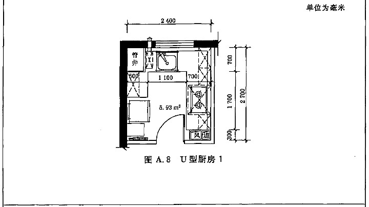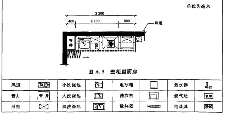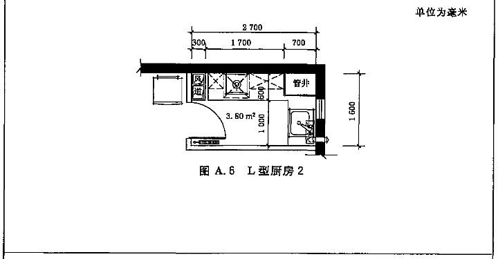A.1 住宅廚房典型平面布置示例如圖A.1~圖A.12。