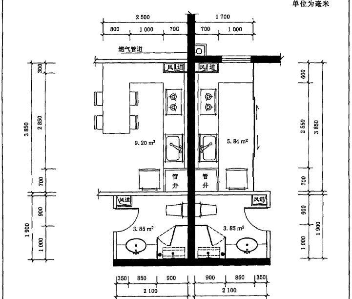 圖B.3 廚衛(wèi)共用管線區(qū)示例