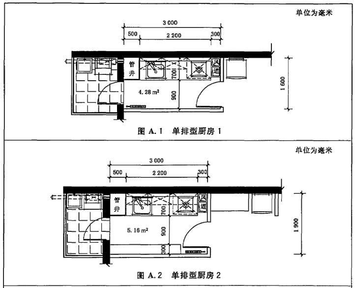 附錄A 住宅廚房典型平面布置示例