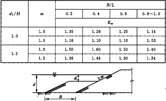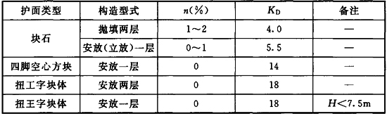塊石護(hù)坡穩(wěn)定安全系數(shù)k可按下式計(jì)算: