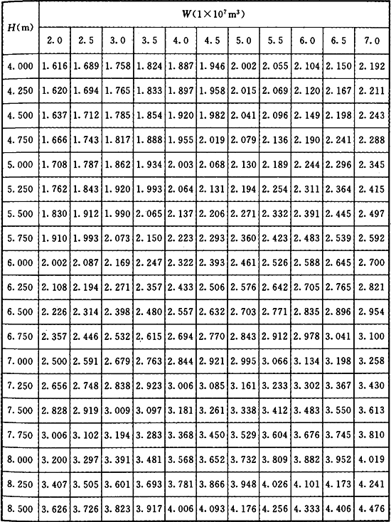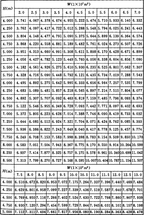 2 假設(shè)一個B,用式(Q.0.1-1)求得一z值,再用式(Q.0.1-2)求出口門尺寸為(B、z)時的最大流速Vmax,由此反復(fù),可得一組(B、z)-Vmax值;
