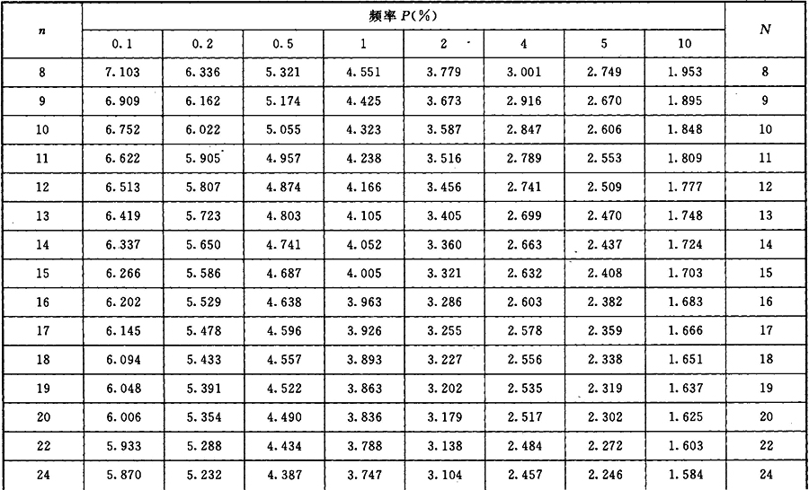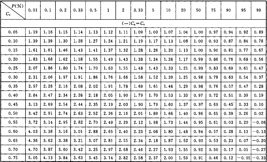 Kp——皮爾遜-Ⅲ型頻率曲線的模比系數(shù),應(yīng)按表A.0.1采用。