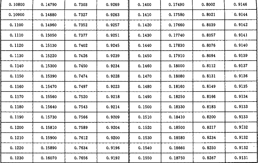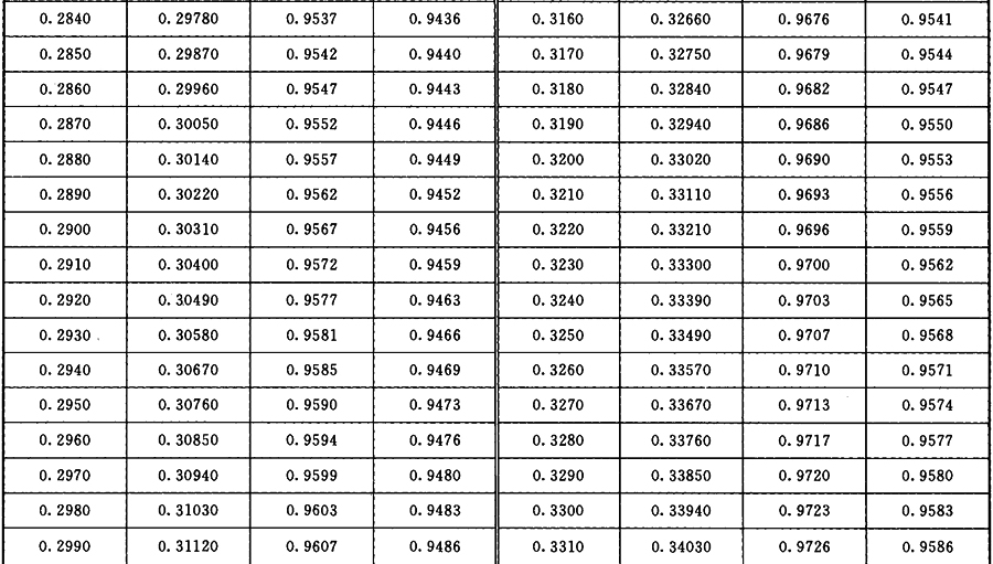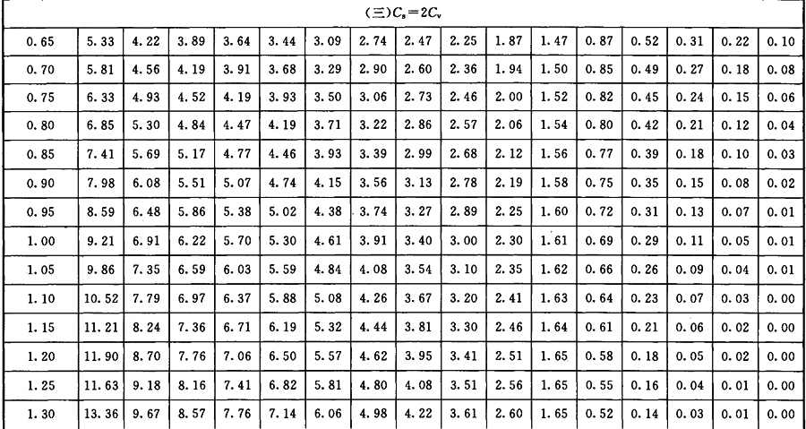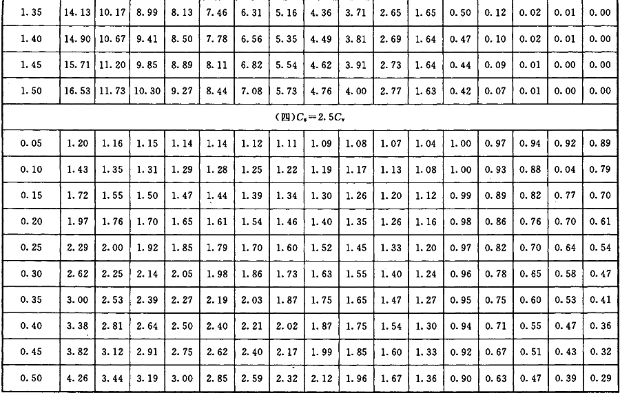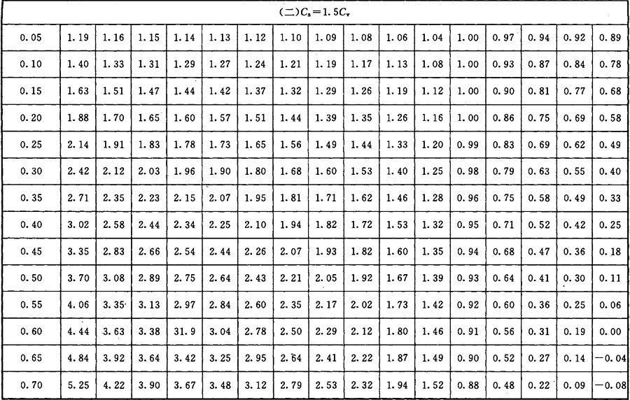 表A.0.1 皮爾遜-Ⅲ型累積頻率曲線的模比系數(shù)Kp值表