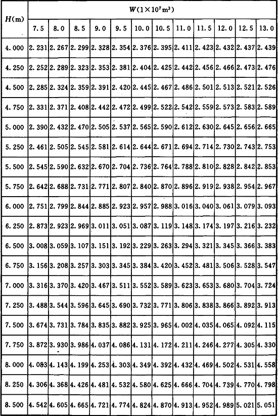 Qf——計(jì)算時段內(nèi)龍口溢流平均流量(m3/s);