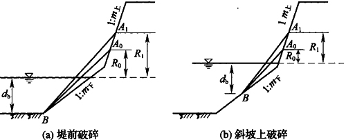 式中:m1——折點(diǎn)b以上護(hù)坡內(nèi)坡的坡率;