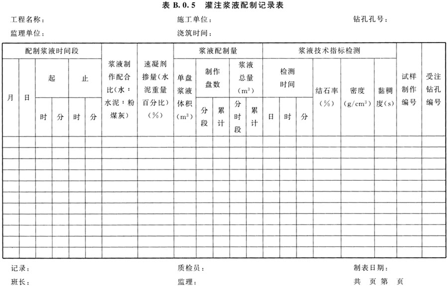 B.0.5 灌注漿液配制記錄表應(yīng)符合表B.0.5的規(guī)定。