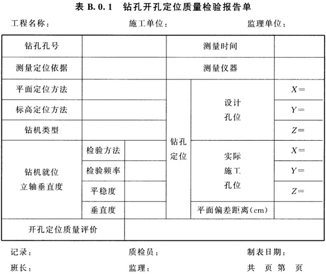 B.0.1 鉆孔開孔定位質(zhì)量檢驗報告單應(yīng)符合表B.0.1的規(guī)定。