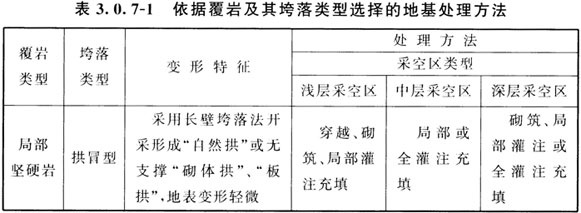 2 依據(jù)覆巖及其垮落類型選擇地基處理方法,可按表3.0.7-1的規(guī)定確定: