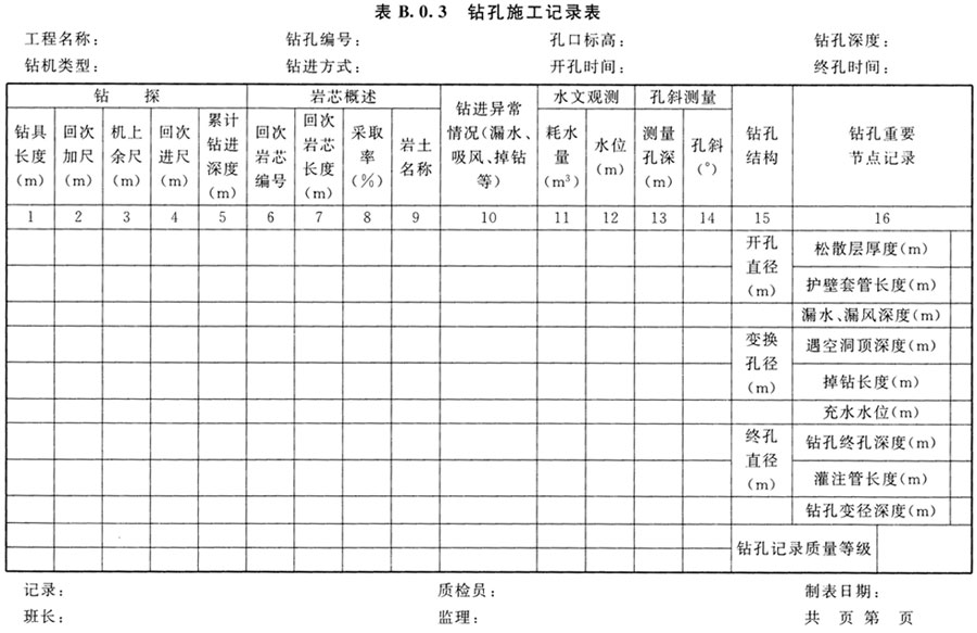 B.0.3 鉆孔施工記錄表應(yīng)符合表B.0.3的規(guī)定。