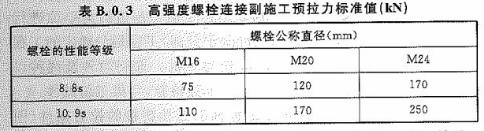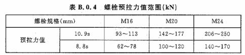 進行連接副扭矩系數(shù)試驗時,螺栓預拉力值應(yīng)符合表B.0.4的規(guī)定。 GB 50576-2010 鋁合金結(jié)構(gòu)工程施工質(zhì)量驗收規(guī)范 (免費下載)