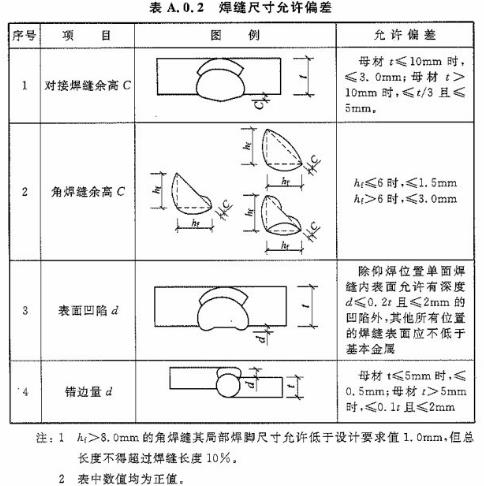 A.0.2 焊縫尺寸允許偏差應(yīng)符合表A.0.2的規(guī)定。大牛工程師