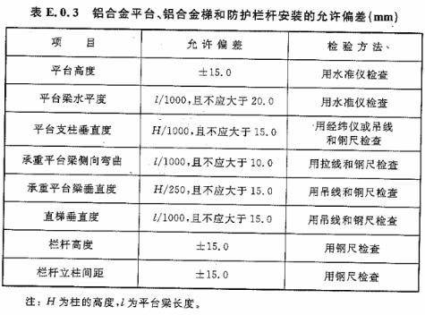 E.0.3 鋁合金平臺、鋁合金梯防護欄桿安裝的允許偏差應(yīng)符合表E.0.3的規(guī)定。報告模板_工程咨詢_免費下載