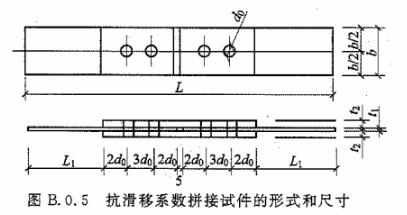 抗滑移系數(shù)檢驗應(yīng)采用雙摩擦面的二栓拼接的拉力試件(圖B.0.5)。 大牛工程師