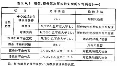 E.0.2 墻架、檁條等次要構(gòu)件安裝的偏差應(yīng)符合表E.0.2的規(guī)定。GB 50576-2010 鋁合金結(jié)構(gòu)工程施工質(zhì)量驗收規(guī)范 (免費下載)