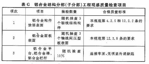附錄G 鋁合金結(jié)構(gòu)分部(子分部)工程有關(guān)觀感質(zhì)量檢查項目