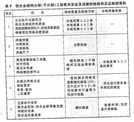 附錄F 鋁合金結(jié)構(gòu)分部(子分部)工程有關(guān)安全及功能的檢驗和見證檢測項目