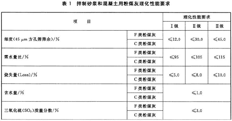 拌制砂漿和混凝土用粉煤灰分為三個(gè)等級(jí):Ⅰ級(jí)、Ⅱ級(jí)、Ⅲ級(jí)。