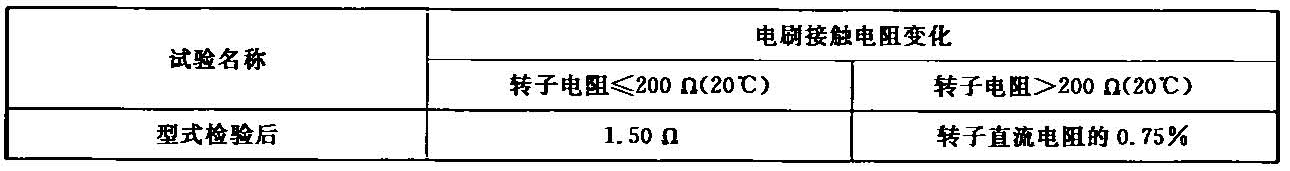 組裝式電機轉子轉動時,電刷接觸電阻的變化應符合GB/T 7345―1994中4.17的規(guī)定。型式檢驗后,其最大變化值還應符合表19的規(guī)定。