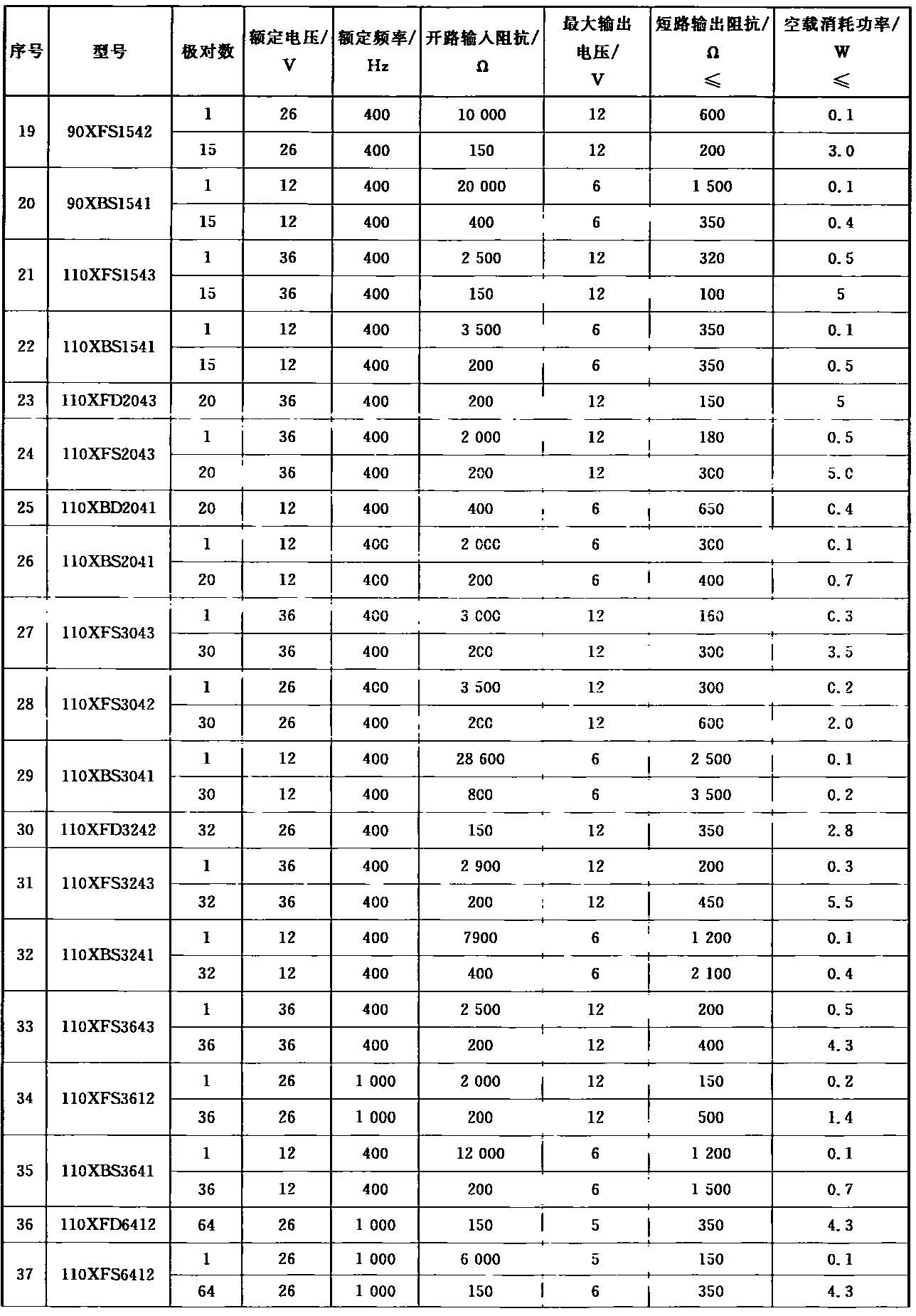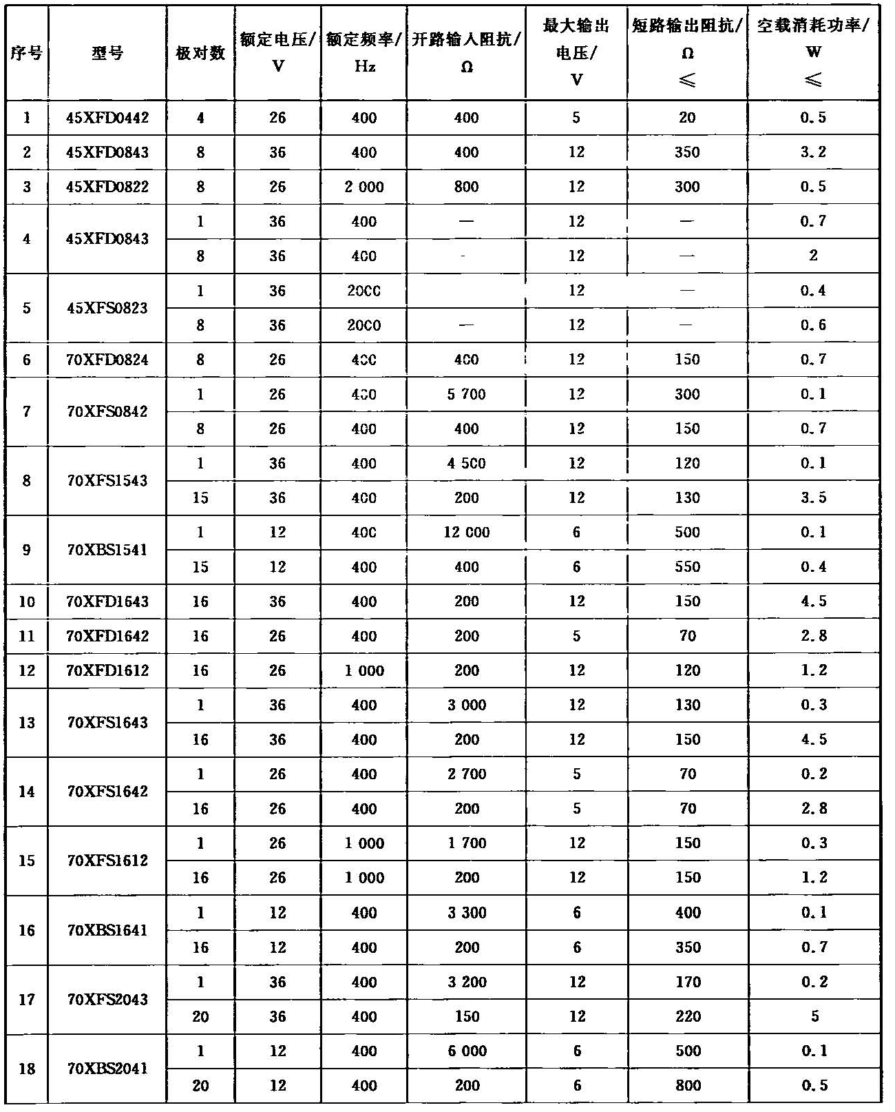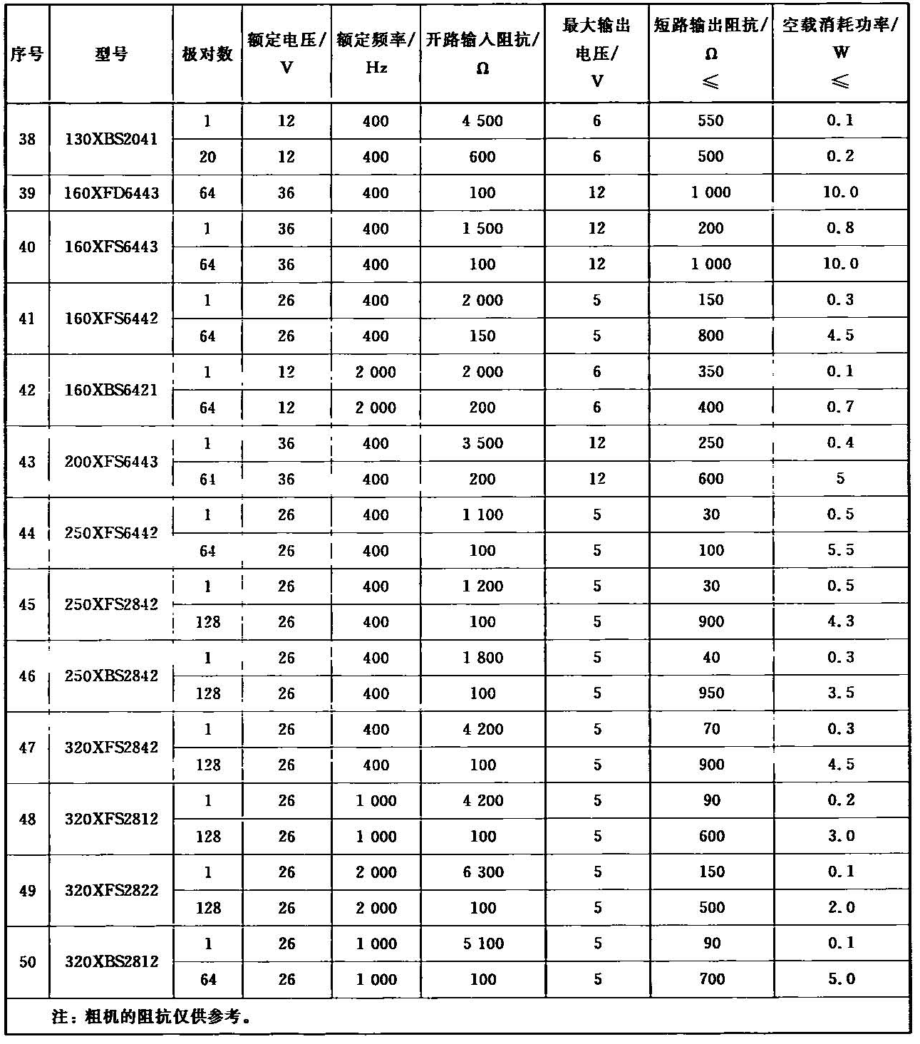 附錄A (資料性附錄)多極和雙通道旋轉變壓器技術性能參數表