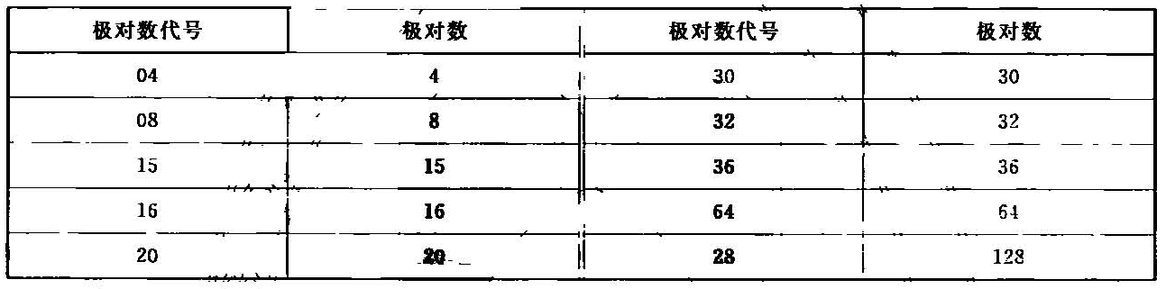 性能參數代號由四位阿拉伯數字組成,前兩位數字為極對數代號,第三位數字為頻率代號,第四位數字為電壓代號。