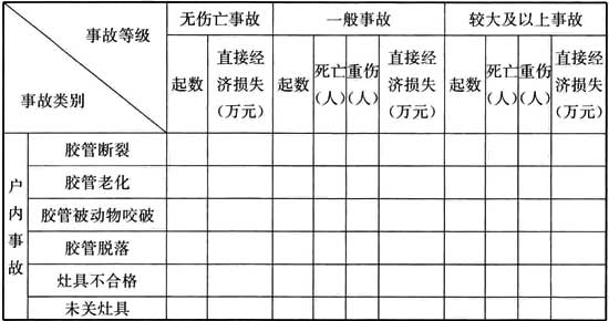 表A.0.2 燃氣事故類別統(tǒng)計表(年月日至年月日)