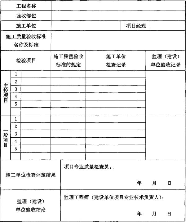 附錄A 施工質(zhì)量驗收記錄表