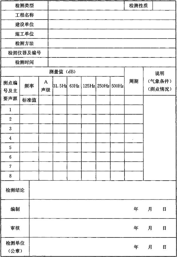 A.0.3 噪聲與振動控制檢測報告單可按表A.0.3的格式填寫。