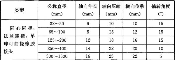 4 橡膠接頭變形量允許值應(yīng)符合表4.0.7-1的規(guī)定。