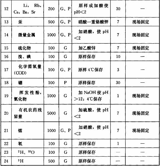 表B 水樣的采取和保存