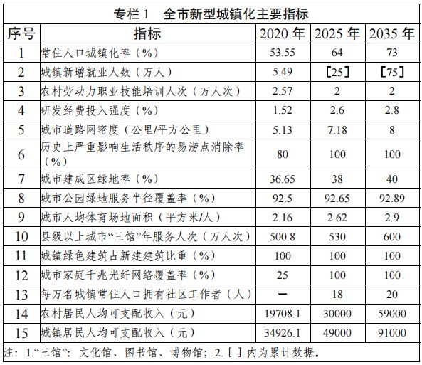 到2035年,新型城鎮(zhèn)化發(fā)展方式全面轉(zhuǎn)型、發(fā)展質(zhì)量全面提升,人的全面發(fā)展與社會安定和諧在新型城鎮(zhèn)化進程中充分彰顯,城鎮(zhèn)化格局成熟定型,全市常住人口城鎮(zhèn)化率力爭達到73%。中心城區(qū)發(fā)展能級更高,鄭許一體化發(fā)展全面實現(xiàn),許昌在鄭州都市圈核心增長區(qū)域地位更加鞏固。全體人民共同富裕邁出堅實步伐,城鄉(xiāng)區(qū)域發(fā)展差距和居民生活水平差距顯著縮小,基本公共服務(wù)均等化覆蓋全部常住人口,新型工農(nóng)城鄉(xiāng)關(guān)系基本形成。