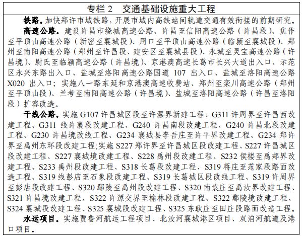 完善綜合交通網(wǎng)絡(luò)布局。以高鐵、高速公路為主體,以普速鐵路和國省道為骨架,以綜合客貨運樞紐為支點,構(gòu)建多種交通方式組成的內(nèi)外暢達、安全高效的一體化綜合交通系統(tǒng),形成“米字型”的綜合交通運輸通道。加快推進鄭許市域鐵路通車運營,構(gòu)建“六縱兩橫”鐵路網(wǎng)。推進焦作至平頂山高速公路(新密至襄城段)、周口至平頂山高速公路(臨潁至襄城段)、鄭州至南陽高速公路(鄭州至許昌段)、許昌至信陽高速公路(許昌段)、許昌市繞城高速公路等以及京港澳高速新增出入口工程建設(shè),打造高效暢通的公路網(wǎng)。實施G311、G107、G234、S227等新建及改建國道省道項目,進一步優(yōu)化國省干線公路路網(wǎng)布局。加快內(nèi)河水運發(fā)展,推進雙洎河航道及港口項目、北汝河襄城港區(qū)等項目。新建北苑大道、玉蘭路、忠武路等道路,改造提升昌盛路、永興路、魏武大道、啟航大道等現(xiàn)有道路,形成“九橫九縱”城市主干路骨架道路系統(tǒng)。