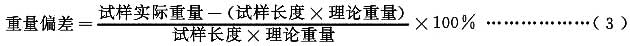 測量鋼筋重量偏差時,試樣長度應(yīng)不小于500mm。長度測量精確到1mm,重量測定應(yīng)精確到1g。鋼筋重量偏差(%)按式(3)計(jì)算: