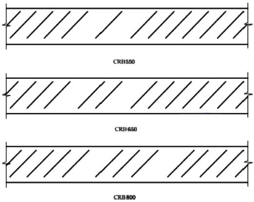 CRB550、CRB600H、CRB680H鋼筋的公稱直徑范圍為4mm~12mm。CRB650、CRB800、CRB800H公稱直徑為4mm、5mm、6mm。
