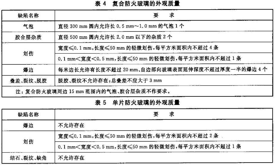 防火玻璃的外觀質(zhì)量應(yīng)符合表4和表5的規(guī)定。