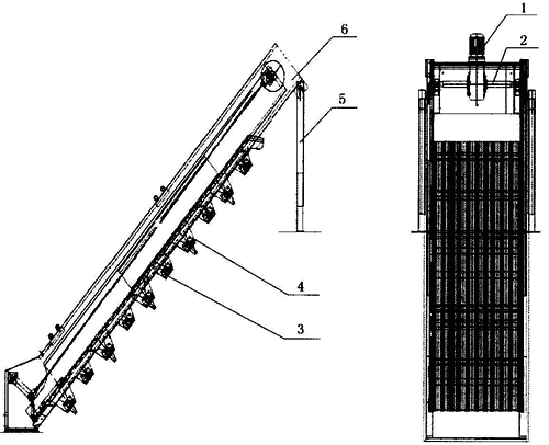 圖A.3 回轉(zhuǎn)式齒耙鏈條格柵除污機結(jié)構(gòu)示意圖