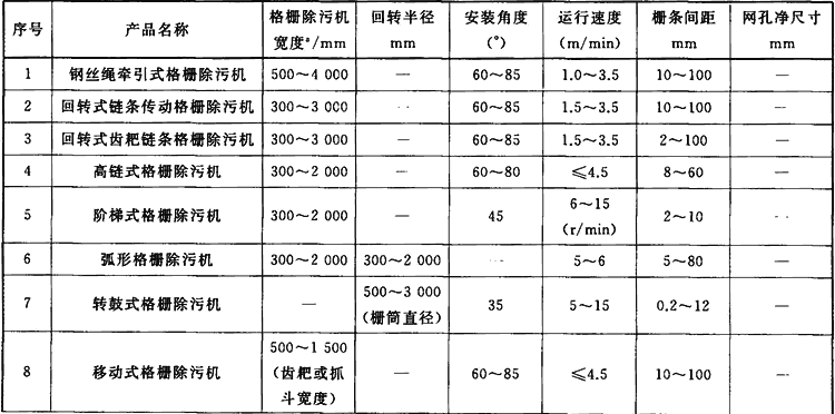 5.1 格柵除污機的性能參數(shù)應(yīng)符合表2的規(guī)定。