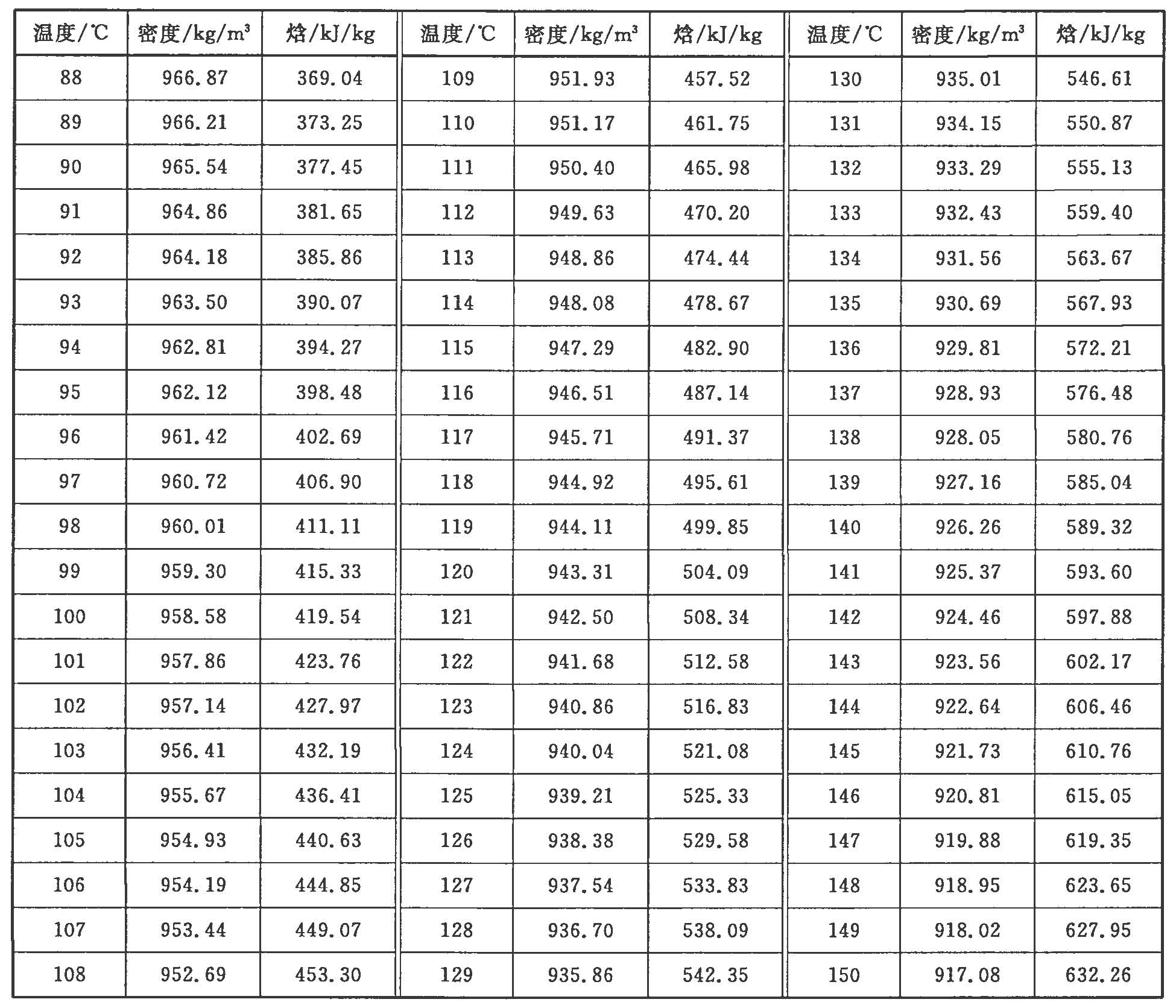 附錄A (資料性附錄)水的密度和焓值表