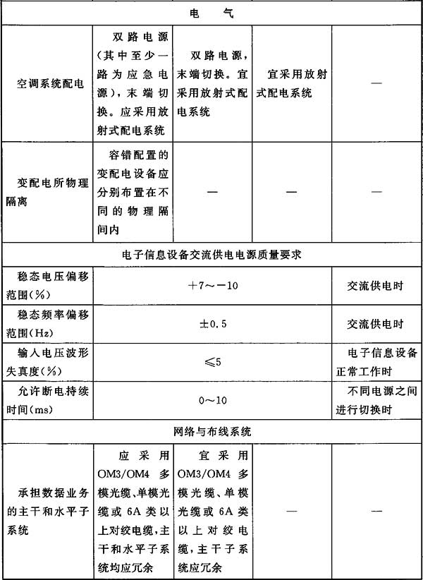 表A 各級數(shù)據(jù)中心技術(shù)要求