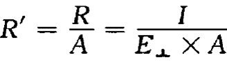 逆反射在觀測方向的光強度I除以投向逆反射體且落在垂直于入射方向的平面的光照度E⊥之商,即: