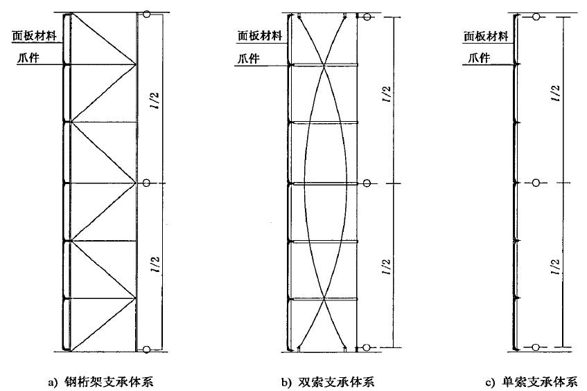 | 點支承玻璃幕墻 | 支承結(jié)構(gòu) | 鋼管、桁架及空腹桁架跨中 | 1/250 |