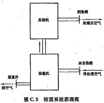 控濕系統(tǒng)主要由除濕機(jī)和壓縮機(jī)組成,控濕原理見(jiàn)圖C.5。