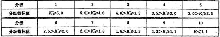 外門、外窗傳熱系數(shù)K值分為10級(jí),見(jiàn)表1。