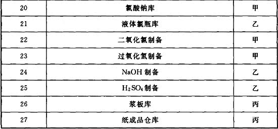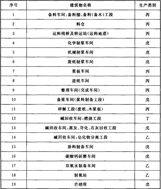 表C 制漿造紙廠主要建筑物火災(zāi)危險(xiǎn)性分類表