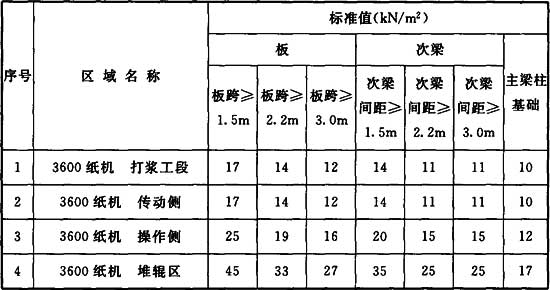 表D.0.2 造紙車間樓面安裝、檢修均布活荷載