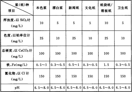 注:特種紙水質(zhì)要求根據(jù)產(chǎn)品特性確定。