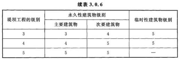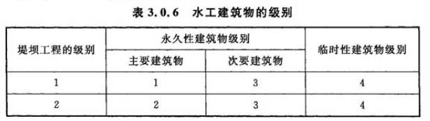 3.0.6水工建筑物的級別應(yīng)根據(jù)工程級別及其在工程中的重要性按表3.0.6確定。