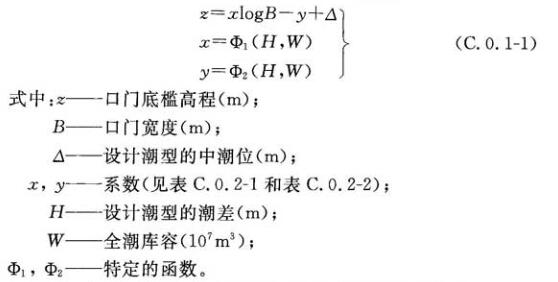 2設(shè)定一個B值,利用式(C.0.2-1),可求得z值。其含義是當(dāng)口門寬度為B時,最大流速將出現(xiàn)在口門底檻高程為z時;