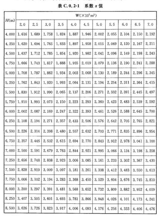 1根據(jù)本工程的H和W,查表C.0.2-1、表C.0.2-2得x、y值;