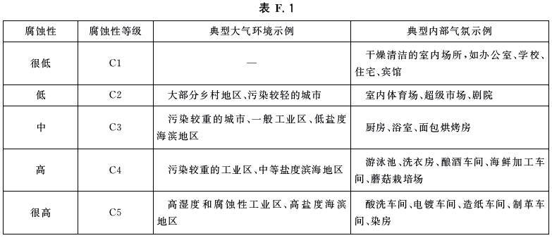 附錄F 彩涂板使用環(huán)境腐蝕性的等級